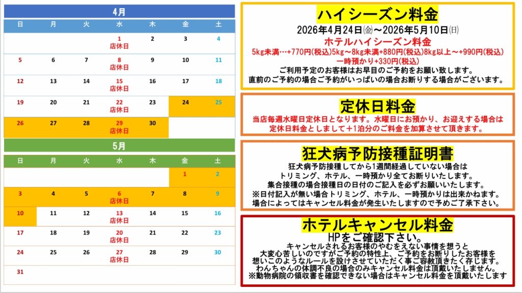 ハイシーズン期間について